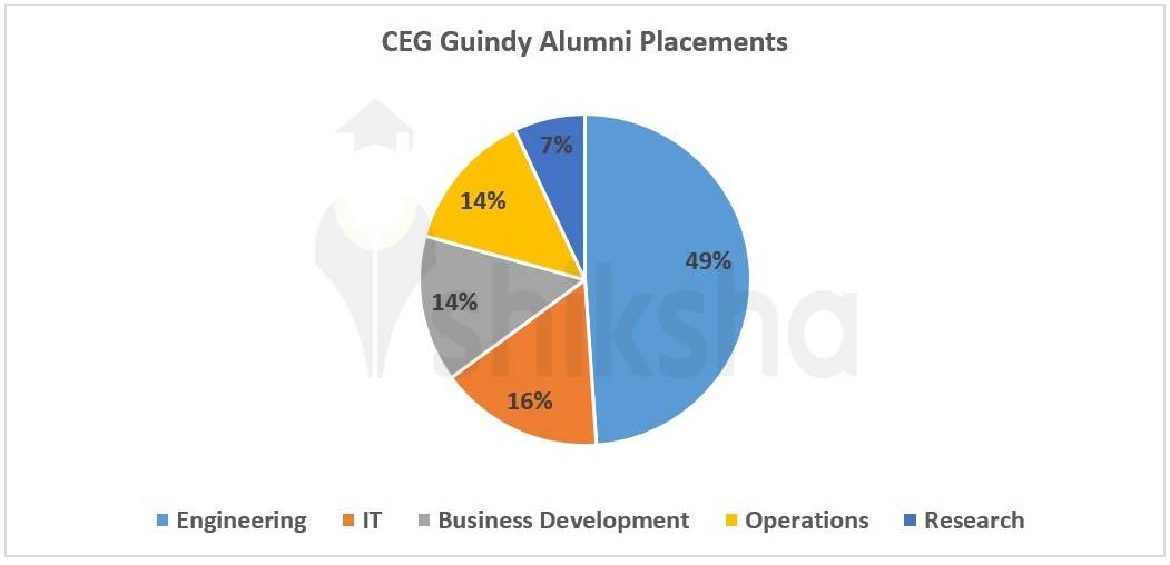 Engineering sector has placed the most no. of CEG Guindy students. The sector-wise CEG Guindy alumni placements statistics are presented below: