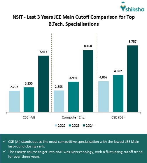Admission to NSIT BTech courses is tough. Moreover, the admissions are based on the JAC Delhi (Joint Admission Counselling) process. To get a reference about the required cutoff for admission to BTech courses, candidates can refer to the JEE Mains last round closing ranks of the three academic years