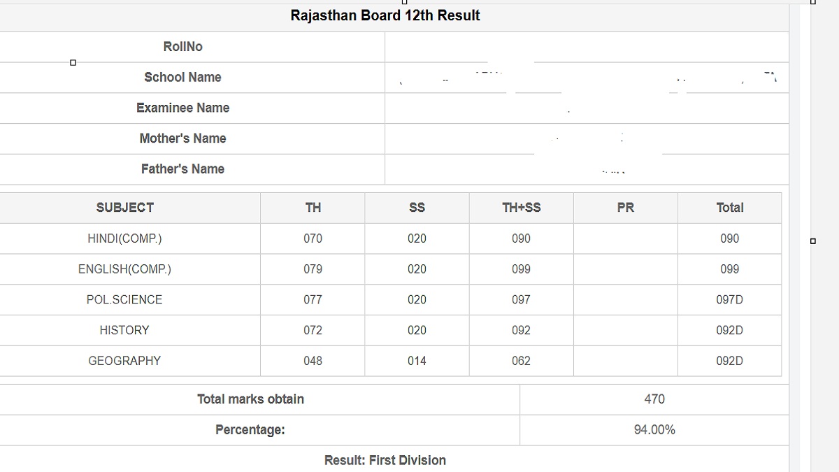- RBSE 12वीं का रिजल्ट स्क्रीन पर प्रदर्शित होगा