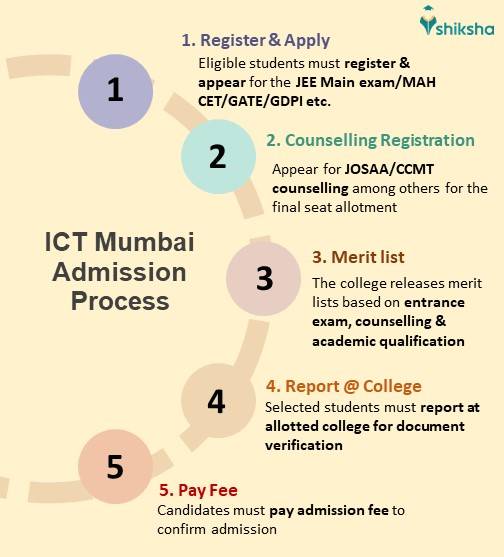 The admission process for ICT Mumbai is a multi-step process inclusive of application, appearance in the selection rounds and counselling process. A step-by-step ICT Mumbai admission process is as follows: