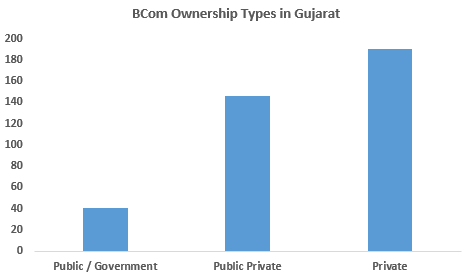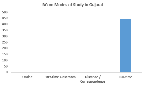 There are a total of 451 BCom colleges in Gujarat which offer BCom course, out of these 190 are private, 41 are public and 146 are public-private. They offer full-time, part-time, distance-learning and online modes of study. Refer to the infographics below to get a detailed overview: