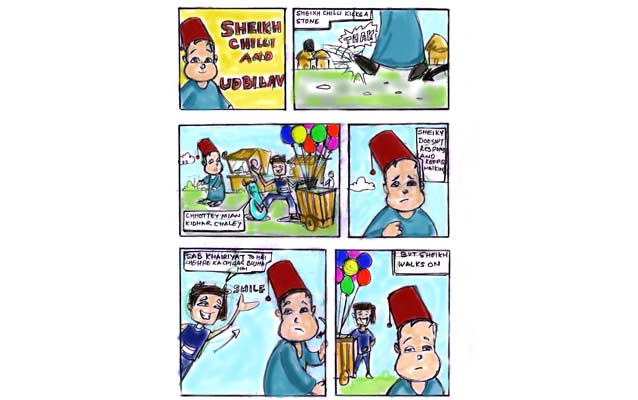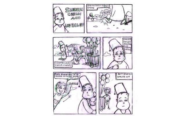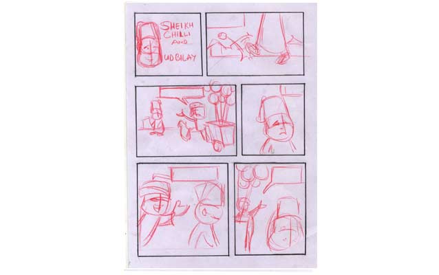 "Sheikh Chilli" is a notorious comic character popular in India. Here are some exclusive pictures to provide a step-by-step guide to readers for understanding the procedure of conceptualizing and designing a comic character.