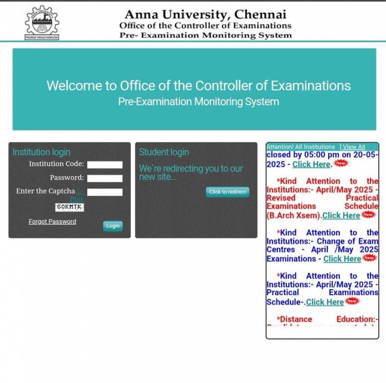 Students will receive updates from the official website (coe1.annauniv.edu/home/) of the University regarding the Examination Centre and Hall Tickets. Anna University has released an update for distance education students for the February/ March examination 2025. Candidates are requested to collect the Anna University examination 2025 hall tickets from the respective study centres. Anna University has released a notification for the change of the examination centres for the April/May 2025 examinations. Candidates must visit the official website to receive more information on all the recent updates.