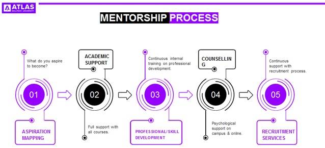 Mentorship Process: At ATLAS each student, follows a mentorship process where the student career Development and Growth is the center focus point and the entire life cycle of the students moves towards developing those skills that further Career Development.