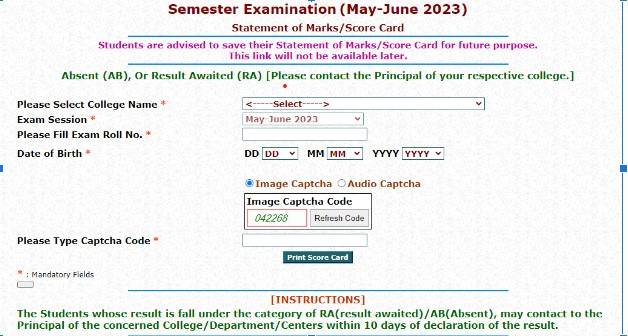 Step 5: Fill in the details like college name, exam session, exam roll no, date of birth followed by captcha code.