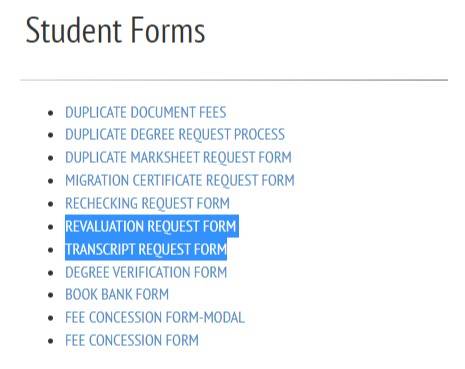 • A new page will be opened on the screen, click on Revaluation/ Rechecking request form.