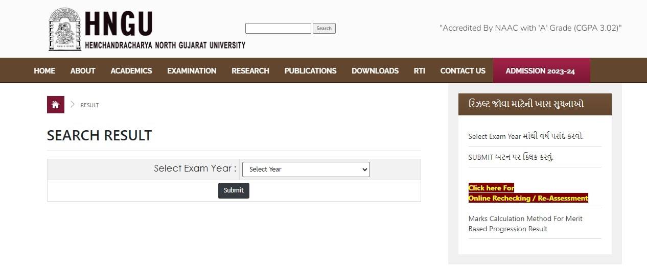 | HNGU Result 2024 website |