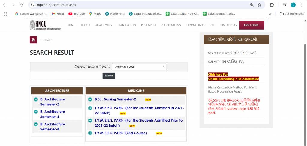 Step 1: Visit the official result website of HNGU – (www.ngu.ac.in/ExamResult.aspx).