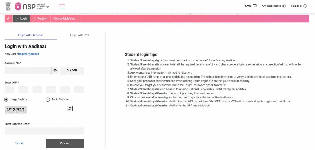 Step 3: Log in to the registered account with the OTR ID and complete the NSP Scholarship Applications 2025.