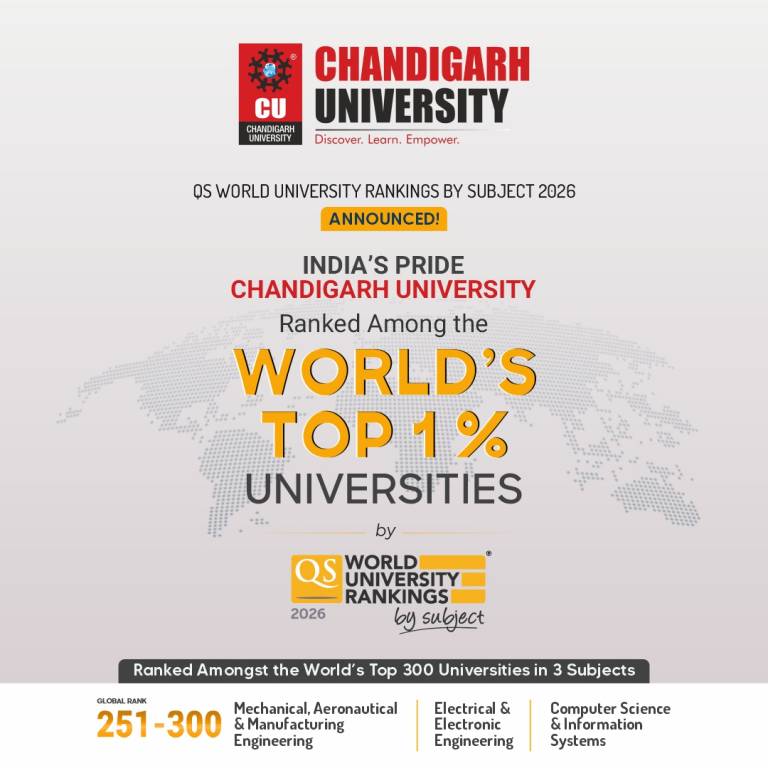 Chandigarh University made notable mark in the QS World University Rankings by Subject 2026. This reflects the University's expansion across disciplines and improved research and academic reputation. Compared with 2025, when CU was ranked in five subjects, the university appears in 11 subjects in 2026, demonstrating rapid growth in both breadth and quality.