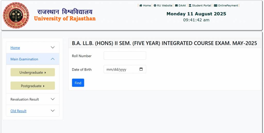 - UNIRAJ (Rajasthan University) Result 2025: Past-Year