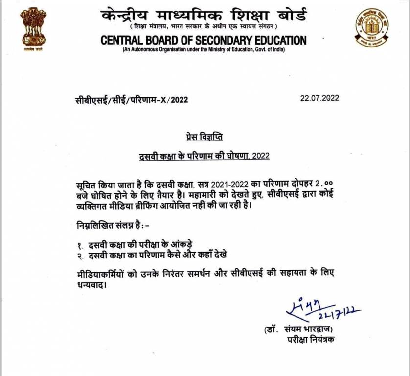 22 जुलाई: सीबीएसई 10th रिजल्ट 2022 cbseresults.nic.in पर घोषित