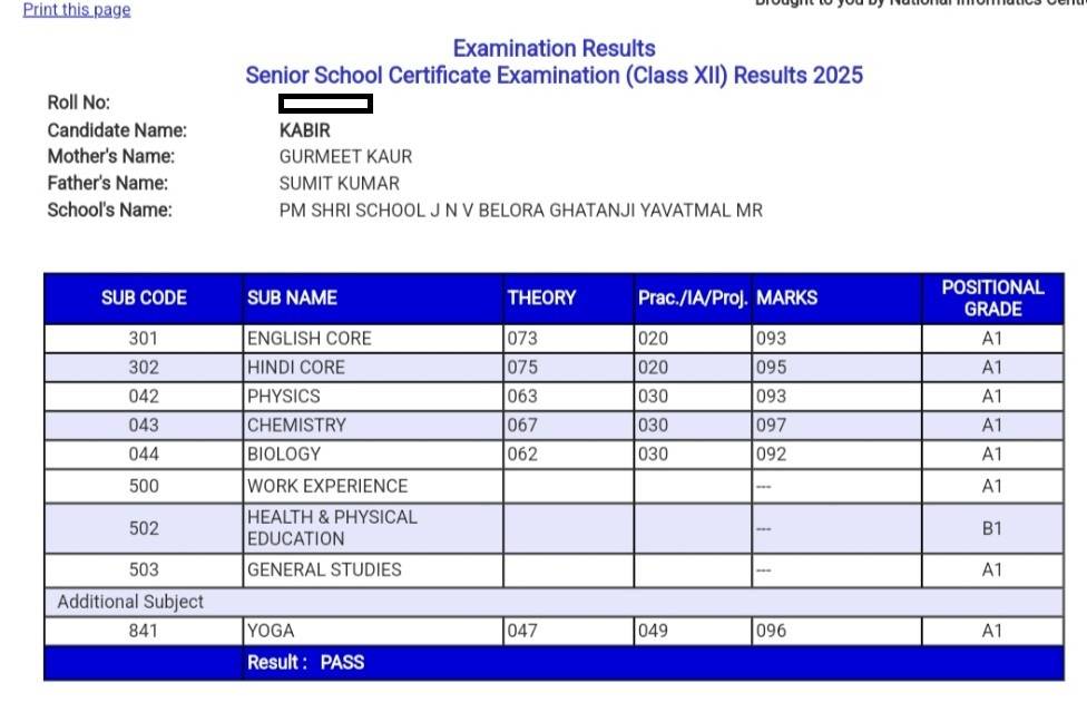 CBSE 12th Topper 2025 Kabir Bhati, a Science student of PM SHRI JAWAHAR NAVODAYA VIDYALAYA, YAVATMAL, emerged as a school topper with 94% marks. With an amazing 470 score out of 500, Bhati aims to pursue a career in neurosurgery. Kabir has scored 93 marks in English, 95 marks in Hindi Core, 93 marks in Physics, 97 marks in Chemistry, 92 Marks in Biology, and 96 marks in Yoga. In an exclusive interview with Shiksha.com, Kabir shared her CBSE 12th exam preparation routine, career plans, tips for aspirants and more.