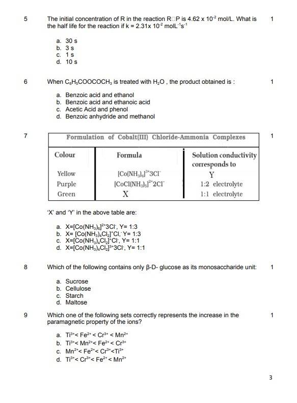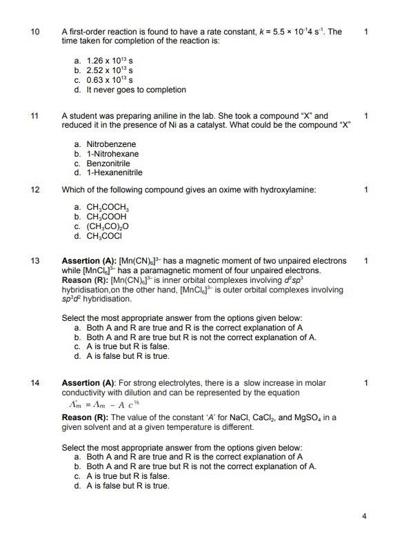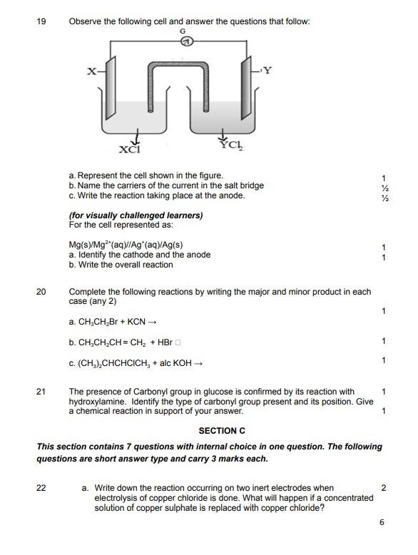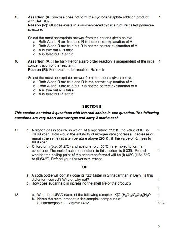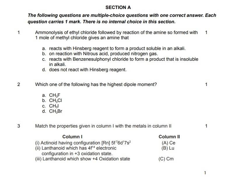 Candidates can check the image and some of the questions from CBSE 12th Chemistry model papers: