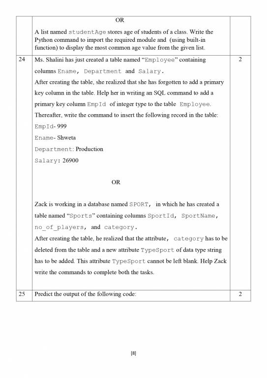| CBSE Class 12 Computer Science Sample Question Paper 2024 |