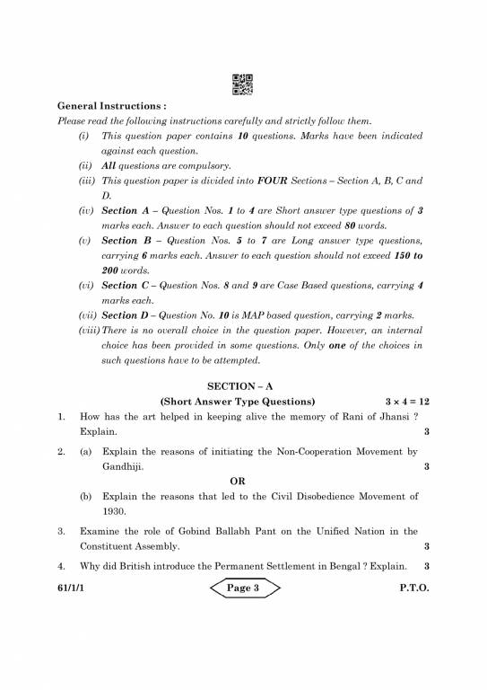 - Utilize the reading time and read the CBSE 12th History Question Paper 2024 carefully.