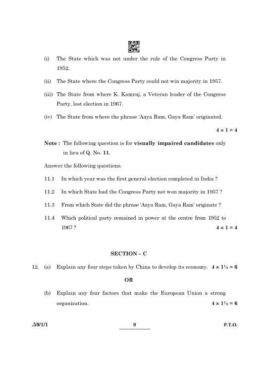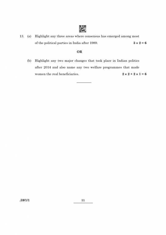 CBSE Class 12 Political Science Question Paper 2023, 2022, 2020, 2019 PDF Download