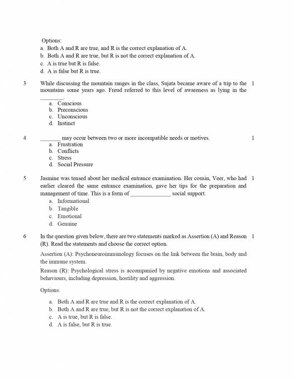 Practice using the CBSE Class 12 Psychology question paper practice paper given below to score well in CBSE Class 12 Psychology Board Exam: