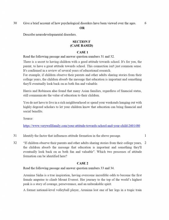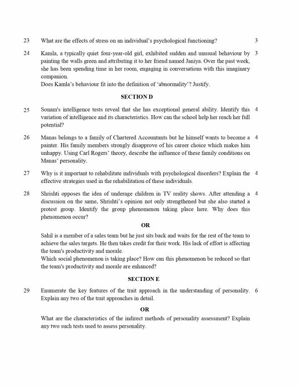 | CBSE12th Psychology Question Paper 2023 |