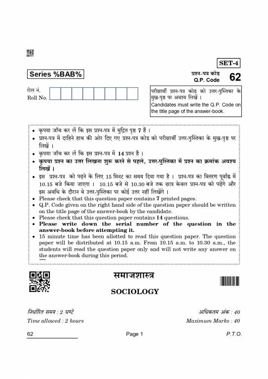- Utilize the reading time and read the CBSE 12th Sociology Question Paper 2023 carefully.