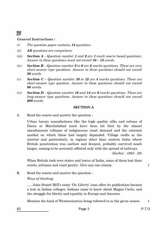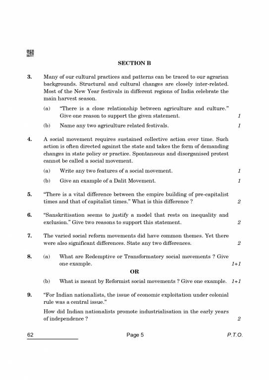| CBSE Class 12 Sociology Question Paper 2022 |
