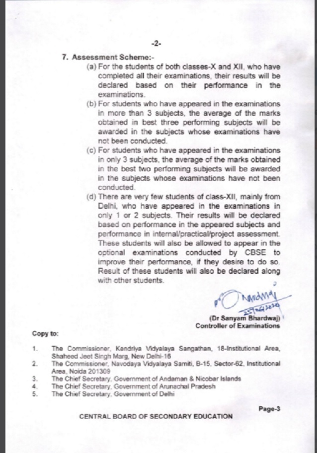 - Those students of CBSE 10th Board and CBSE 12th Board who have appeared in more than 3 subjects, the marks for the pending subject would be based on the average marks obtained in the best three subjects