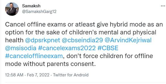 Feb 3, 9 am: On Twitter, Students have been demanding to cancel CBSE offline exams considering the COVID-19 pandemic.