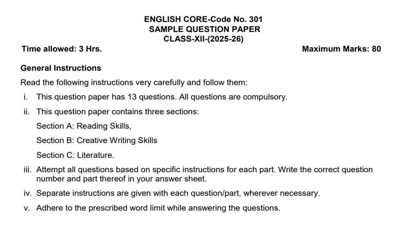 - CBSE Class 12 English Core Sample Paper 2025-26 PDF