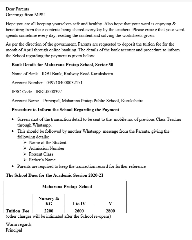 Gourav Goyal, whose child studies in class 5 at Maharana Pratap School, Sector 30, Haryana, posted a tweet after receiving a circular regarding fee payment.