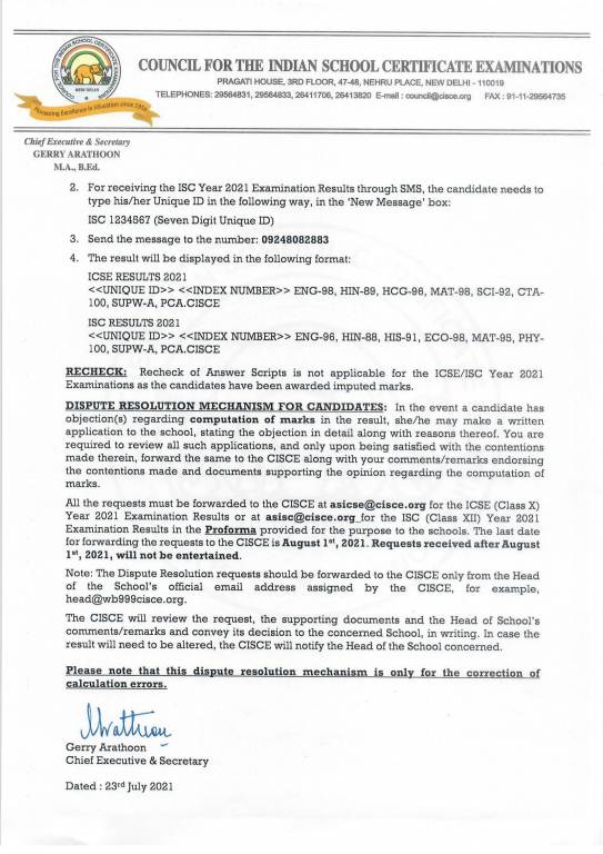Students can also check ICSE Results via SMS, Mobile App and Digilocker. Earlier, CISCE had cancelled the class 10 and class 12 board examination along with various other national and state boards in India due to COVID 19 situation.