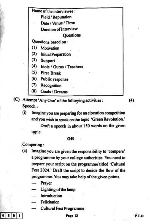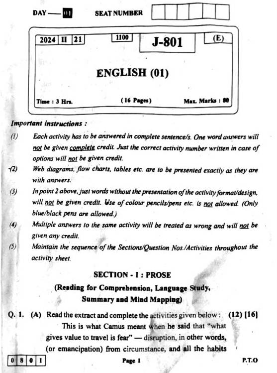 | Maharashtra Board HSC English Question Paper 2024 |