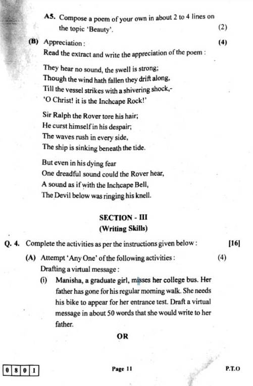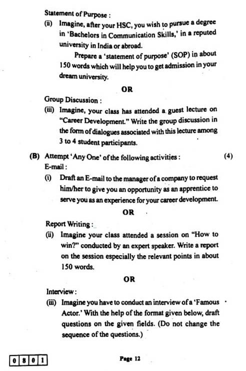 | Maharashtra 12th Board English Question Paper 2022 |