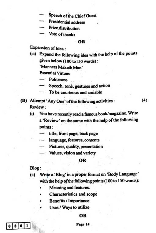 | Maharashtra HSC English Question Paper 2020 |
