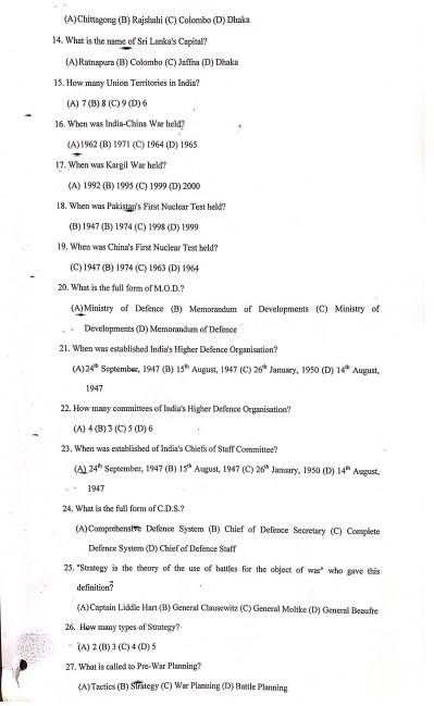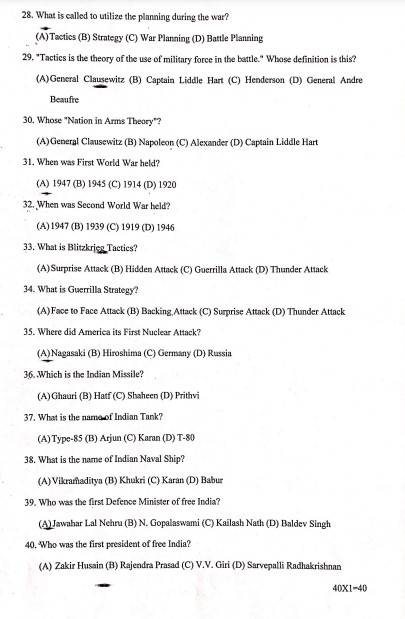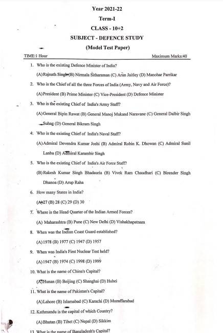 | Maharashtra HSC Board Defence Studies Model Paper 2022 |