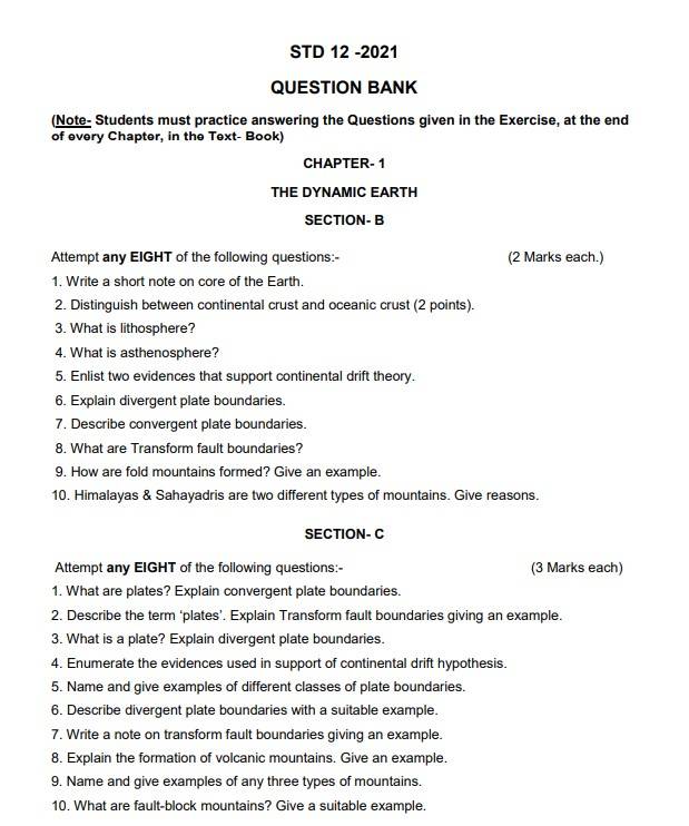 | Maharashtra 12th Board Geology Question Paper 2021 |