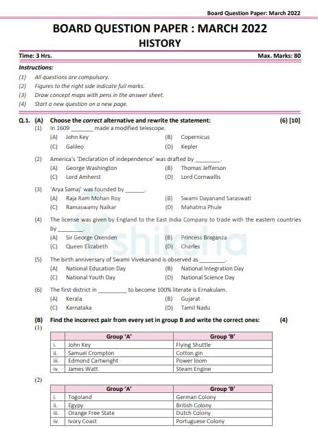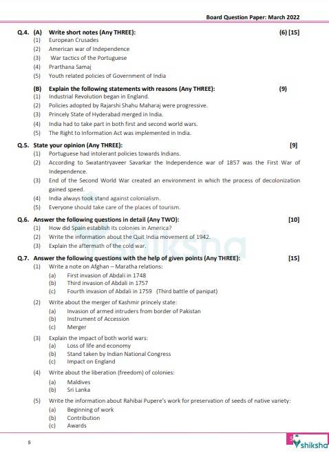 | Maharashtra 12th Board History Question Paper 2022 |