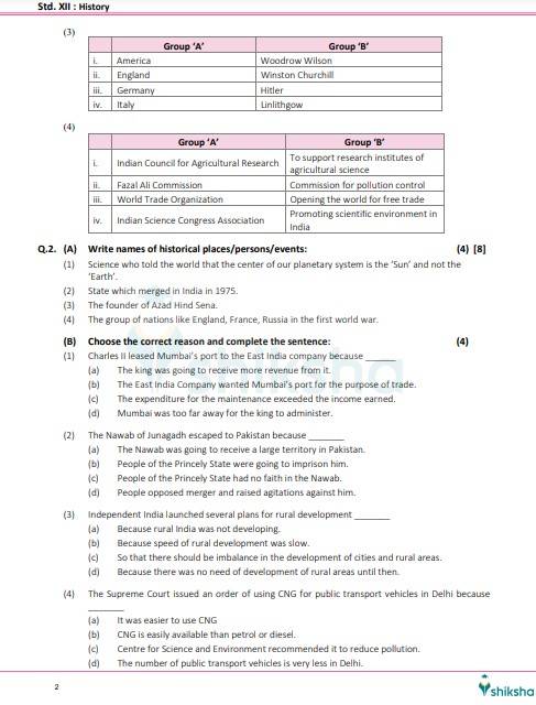 | Maharashtra 12th Board History Question Paper 2021 |