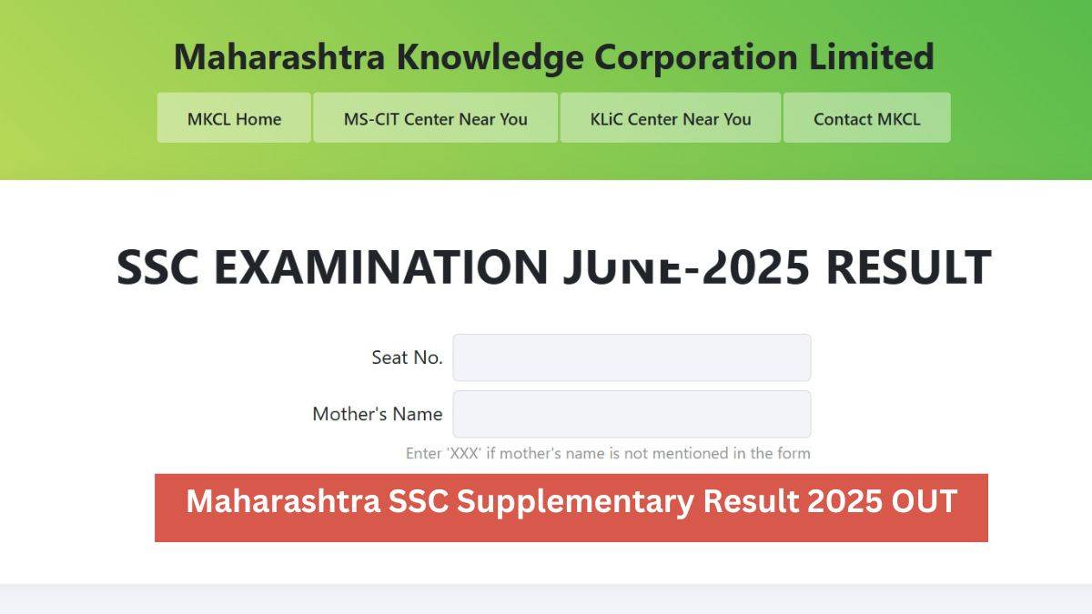 Maharashtra SSC supplementary result 2025 is available to be checked online at the official website: mahresult.nic.in, mahahsscboard.in and sscresult.mkcl.org. Students must use their seat number and mother’s first name to check the SSC supply result Maharashtra 2025. They can check Maharashtra 10th compartment direct link to download the marksheet, and other details here.