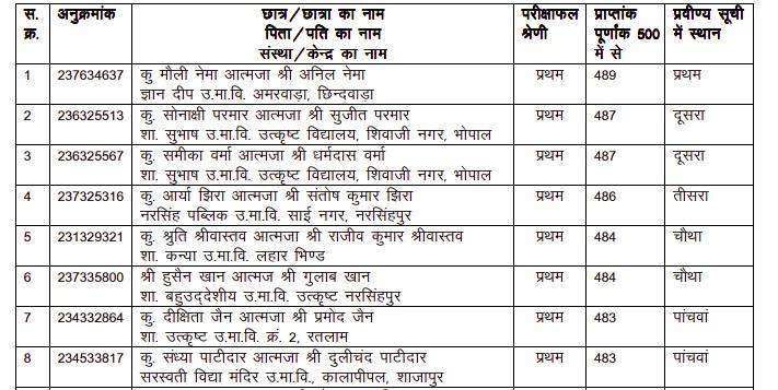 The overall pass percentage for MP Board 12 Exam 2020 was 68.81. The pass percentage of girls was 73.4% and boys pass percentage was 64.66%. The list of all toppers is given below: