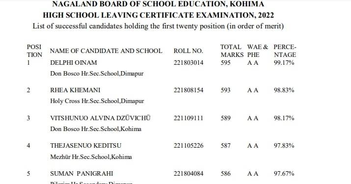 - Nagaland Board NBSE Topper List 2022 Class 10