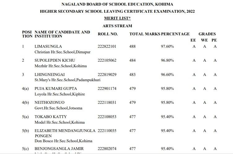 - Nagaland Board 12th Toppers List 2022 (Arts)