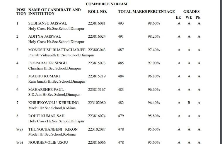- Nagaland Board 12th Toppers List 2022 (Commerce)