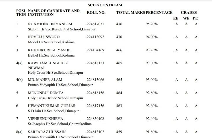 - Nagaland Board 12th Toppers List 2022 (Science)
