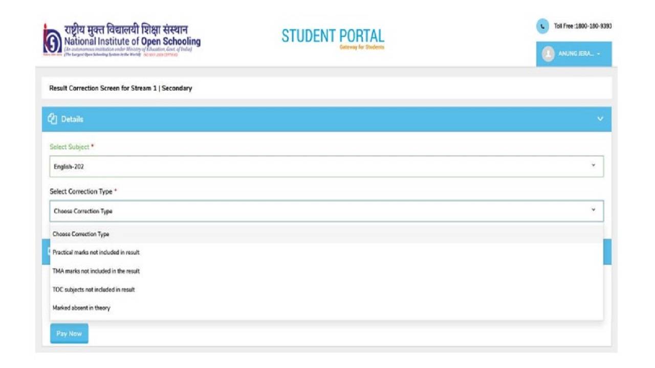 Request for result correction shall be done within 30 days from the date of release of the NIOS result. All the Candidates who are not satisfied with their NIOS result 2022 can apply for NIOS result correction in the subjects appeared in Public Examination of Secondary and Senior Secondary courses in October/November 2022. They have to login to the dashboard on the student portal -sdmis.nios.ac.in and click on the “Apply” link on the Result Correction tile as shown below: