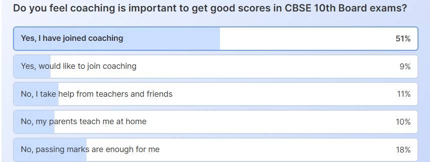 According to the poll, 51 percent of students said they have already joined coaching to prepare for their CBSE Class 10 board exams. This clearly shows that students rely on coaching to score well in board exams, and thus is very important.