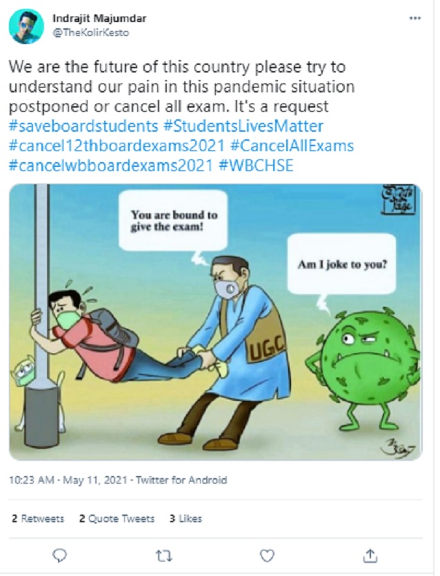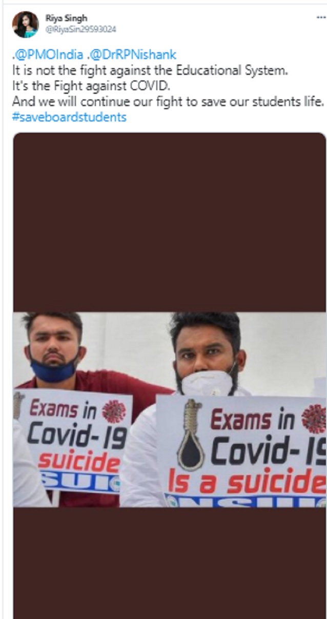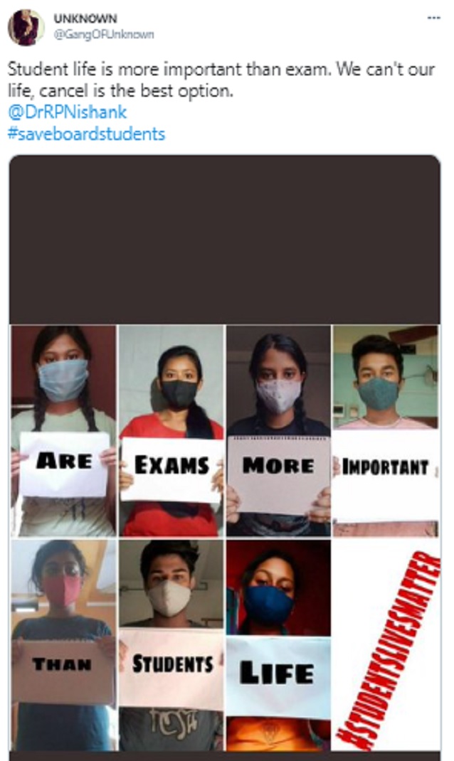 "We are the future of this country please try to understand our pain in this pandemic situation postponed or cancel all exam. It's a request," another student tweeted.