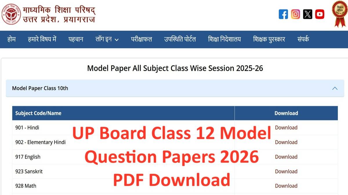 UP Board Class 12 Model Question Papers 2025-26 PDF: How to download?