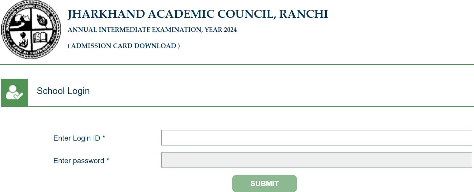 This is how the JAC Class 12 Admit Card 2026 login window looks: