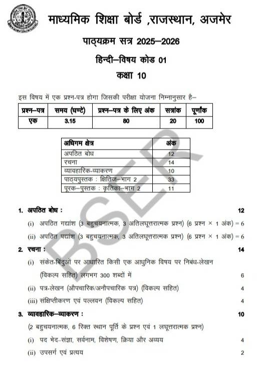 - RBSE Class 10 Hindi Syllabus 2025-26