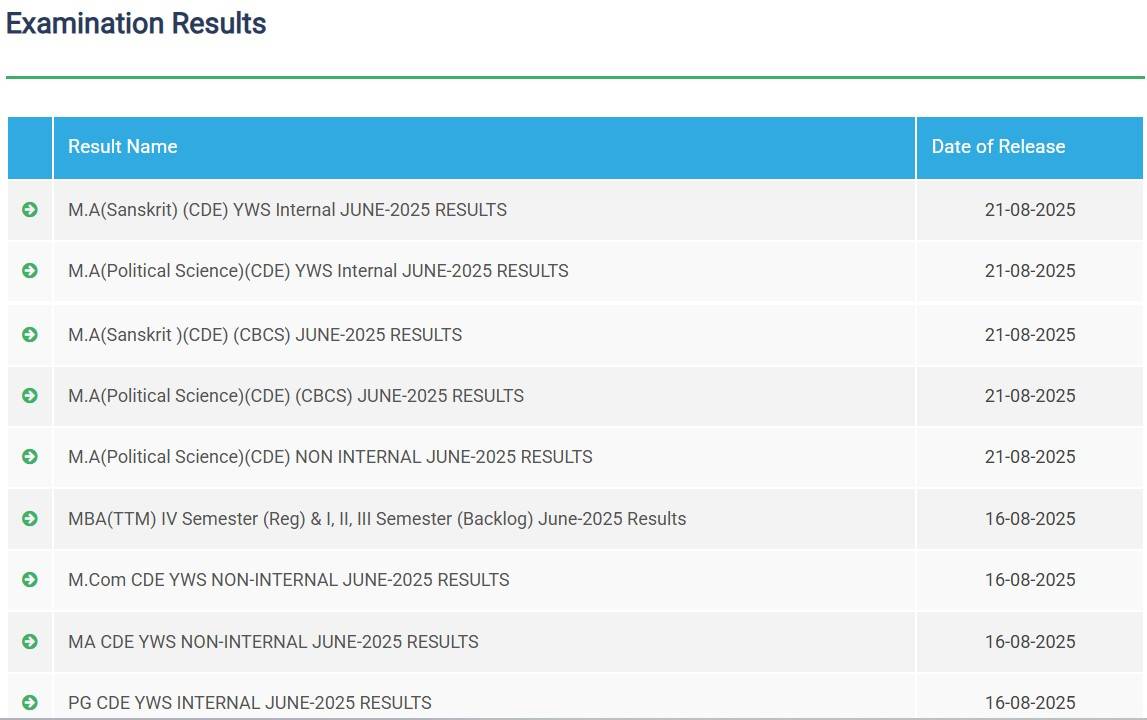 OU results have been released for MA (Sanskrit) (CDE) YWS Internal June -2025, MBA (TTM) IV Semester (Reg) & I, II, III Semester (Backlog) June 2025, and others. Students can check www Osmania ac in results - 2025 and download their Osmania University Hyderabad scorecard. Usually, Osmania University Amberpet releases the OU exam forms one month before the exam. The OU exam timetable is available on the official website. Download the OU timetable from the official website, which is www.ouexams.in/examnotifications.